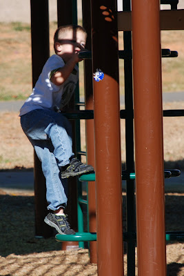 It was so nice out this weekend and the leaves have started changing. Andrew tells me it is "its fall mommy, the leaves are changing to red". We had fun at the park today and when we got home Andrew wanted to make a pile of leaves to jump in. I got some great shots of the kids today. Chloe is getting so big and loved eating the leaves at the park. Last year Andrew had some trouble on the playground we went to but today he jumped right up on the big set.